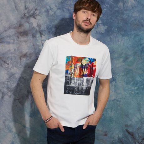油絵風グラフィックを大胆にプリントしたアラカルトクルーネックTシャツです。