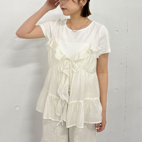 ラッフルフリルキャミ×テレコTeeSET