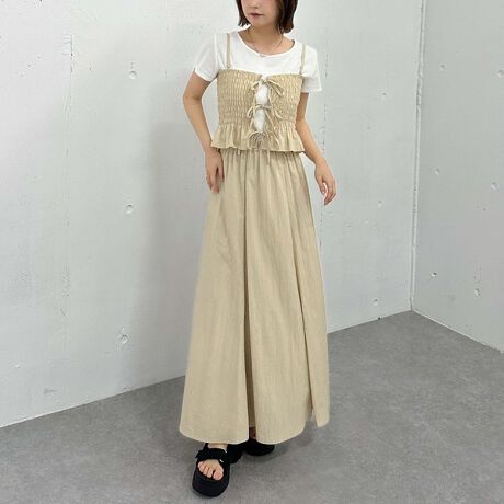 ワンピースとして、ビスチェとしてスカートとしてマルチに着まわせるアイテム。