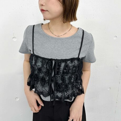 いつものコーデにプラスで楽しめるレースキャミビスチェ。