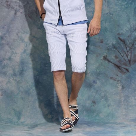 腰回りがすっきりした膝下丈で、テーパードシルエットが綺麗なハーフパンツになります。