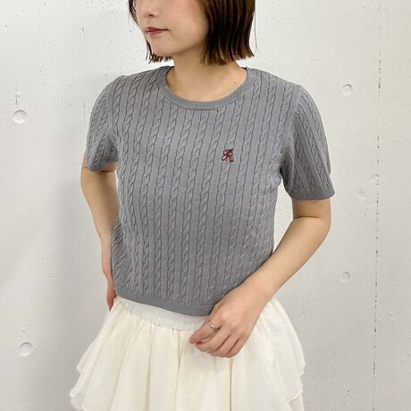 アルシーヴで大人気のロゴ刺繍ケーブルニットが半袖にアップデート!