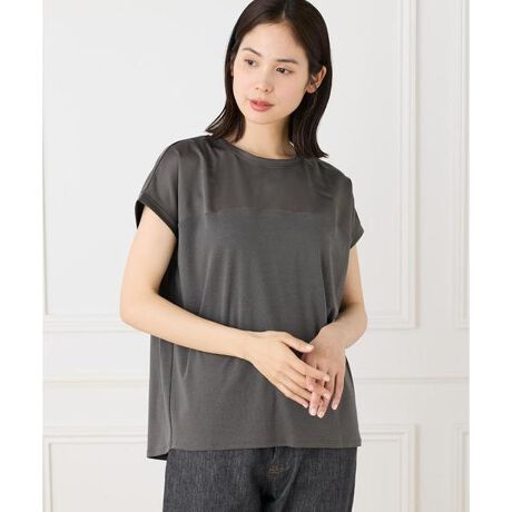サテン切り替えのドルマンプルオーバー。二の腕、ボディラインが出にくいサイズ感に拘りました。サテン地の切り替えや、バックスタイルのタック、ニュアンスのあるヘムライン等のディテール使いにより、着心地の良さと、表情のあるデザイン性を併せ持ったデザインTシャツに仕上げました。・水洗い可2025FW新型スビンキャミ品番:1050190124■素材■インドのスビン綿を使用したフライス素材。インドのSUVIN(スビン)綿は、繊細で、豊潤な油脂分によるなめらかな肌触りが特長。インドに元来ある超長綿花 SUJATHA(スジャータ)と 海島綿(St.VINCENT) が交配されて出来た希少価値が高い超長綿。 繊維長が長く、繊度が細く、強度があり、上品な光沢が特徴です。伸縮性のある、程良い肉感のソフトなフライス組織の素材に、更に、ローズぺトール加工を施すことで抜群の肌触りの生地に仕上げました。