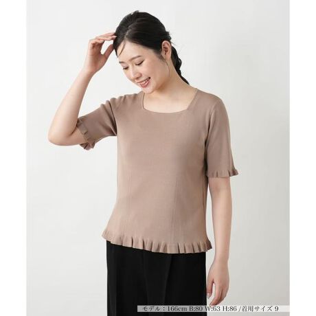 すっきりとしたシルエットが美しい、無地のスクエアネックニット。ゆったりと開いたネックラインがデコルテを綺麗に見せ、程よい抜け感を演出。女性らしい上品な佇まいの中に、袖口や裾のフリルがさりげなく甘さを添え、シンプルながらも表情豊かな一枚に仕上げました。ハイゲージニットはさらりとした肌触りと適度な伸縮性が心地よく、軽やかな着心地を叶えます。------------------------------------着用シーズン:初夏伸縮性:あり透け感:ありポケット:なし生地の厚さ:薄手裏地:なし-------------------------------------※商品の色味は、撮影場所や光のあたり具合、お客様のお使いの機器により色味が違って見える場合がございます。予めご了承ください。■□BOURGE(ブールジュ)・・・ライフステージが変化する年齢になって思う「これからの私」。新しい環境や役割の中で、理想の自分を見つけたい。自分の中に芽生える「新しい自分」を発見しながら自分をアップデートし続ける大人の女性のための日常服を提案します。□■
