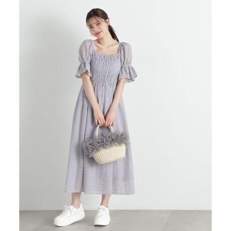 繊細な刺しゅうをあしらったレースワンピースは、袖にダブルギャザーを入れたバルーンスリーブがポイント。膨らみのあるバルーン袖が気になる二の腕をカバーしながら、フェミニンさも叶えてくれます。トップス部分はシャーリング仕様で動きやすく、キレイなシルエットを演出します。