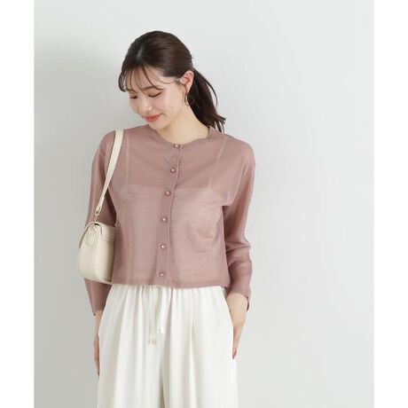 天竺編みでより薄く仕上げたシアーカーディガンです。シンプルなクルーネックデザインで、ワンピースの羽織にも、ボタンを全て留めてトップス風にも着こなせます。これからの季節、冷房対策にもおすすめです。