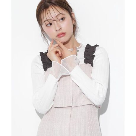 袖シアーフレアニット
