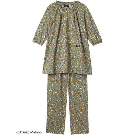 【パジャマ(7分袖ロングパンツ)】クリエーター“俣野温子”氏がデザインする、甘くなりすぎない大人かわいいテキスタイルとカラーで、くつろぎ時間を楽しく過ごせるパジャマ&ルームウェア・綿100%の天竺素材を使用・小さなお花が愛らしいプリント柄・ポケットから顔をのぞかせている黒猫のアップリケがデザインポイント・おうち時間にぴったりな、リラックス感のあるシルエット【サイズ詳細】M:身幅59.0cm 着丈72.0cm 身丈74.5cm 裄丈59.0cm ボトム脇丈95.0cm 裾まわり43.0cm ウエスト58.0cm ヒップ100.5cm 股下(レングス)67.5cmL:身幅63.0cm 着丈72.0cm 身丈74.5cm 裄丈59.5cm ボトム脇丈95.5cm 裾まわり45.0cm ウエスト63.0cm ヒップ104.5cm 股下(レングス)67.5cmLL:身幅67.0cm 着丈73.0cm 身丈76.0cm 裄丈61.0cm ボトム脇丈96.0cm 裾まわり48.0cm ウエスト68.0cm ヒップ109.5cm 股下(レングス)67.5cm3L:身幅71.0cm 着丈74.0cm 身丈77.0cm 裄丈61.5cm ボトム脇丈96.5cm 裾まわり51.0cm ウエスト73.0cm ヒップ114.5cm 股下(レングス)67.0cm※出来上がり寸法を表示しております※サイズ詳細の寸法には多少の差異がございます※アイテムによって柄の出方が異なりますのでご了承ください。