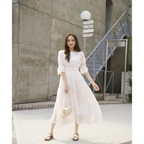 刺繍レーススリーブティアードワンピース