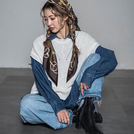 春や秋の重ね着のアクセントとしても活躍する万能アイテム。