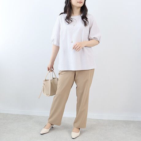 軽やかで女性らしい雰囲気を演出する、サッカー素材のブラウスが登場。