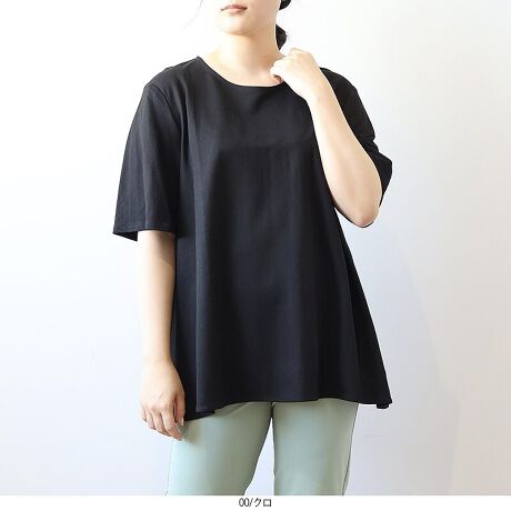 前後差のある裾デザインが腰回りをさりげなくカバーし、ぽっちゃりさんにも嬉しい一枚!