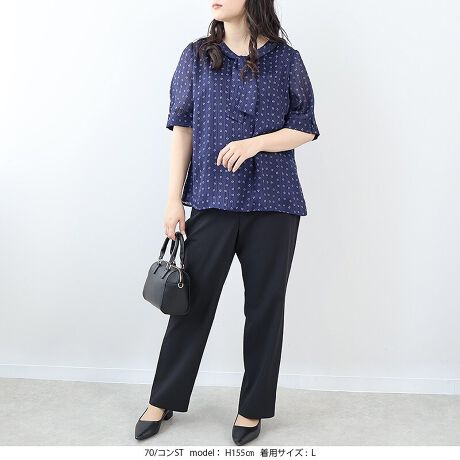 すっきりとしたネックラインとボウタイの絶妙なバランスが、顔周りを上品に見せてくれます。