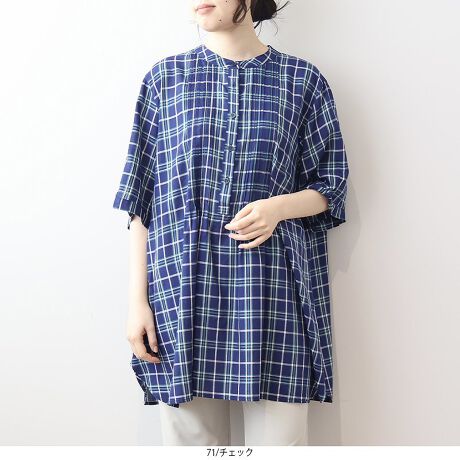 【大きいサイズ】【WEB&一部店舗】バンドカラーピンタックチュニック