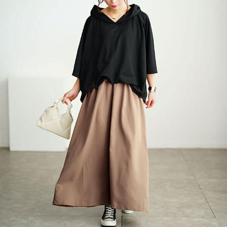 サッと一枚着るだけで手抜きに見えない!フード付き異素材ドッキングワンピースが登場です☆ゆったりとしたドルマンスリーブで二の腕をカバーし、体型を拾わないゆとりのある身幅で華奢見せ効果も抜群です!前だけインをしたデザインでこなれ見えします◎ウエストはゴム仕様なので締め付け感なくノンストレスな着心地なのもオススメポイント☆たっぷりと生地を使用し動くたびに美しく揺れるフレアシルエットでカジュアルな中にもエレガントな女性らしさを演出してくれます♪