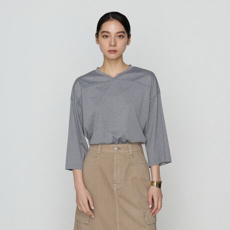 36Gポリエステル/レーヨン天竺 Vネックカットソー