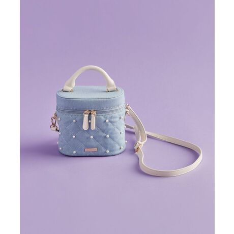 【2WAY仕様】デニムキルティングの素材にパールビーズを散りばめたフェミニンなショルダーバッグ。