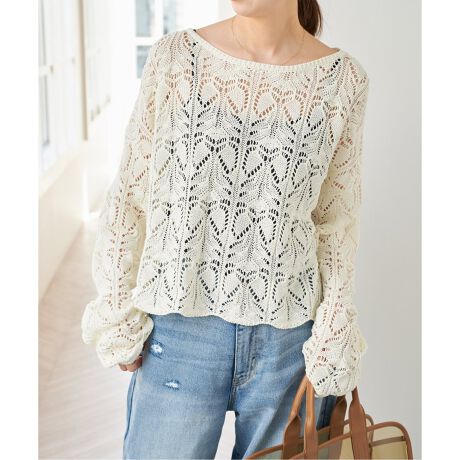透かし編みが今年らしいデザインニット。