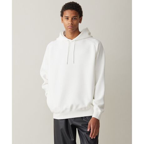 ■デザインリラックスムード漂うボディ感がボディラインを拾わないので、品よく見せてくれるフ―ディー。大き目なフードが印象的です。光沢感がある表面なので、スウェット素材でありながらも高見えするところも魅力的です。また素材の肉感はしっかりとしていますが、とてもライトウェイトでもちっとした触り心地で着心地も快適です。
