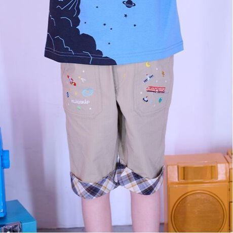 銀河鉄道をイメージした刺しゅうがユニークな6分丈パンツです。