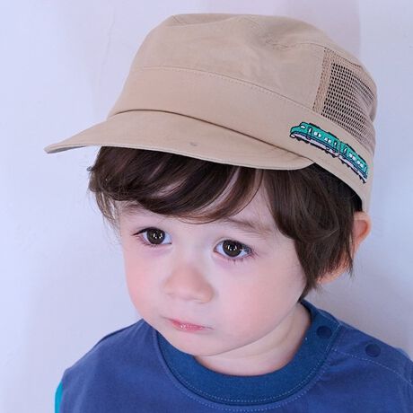 電車の刺しゅうが目を引くメッシュワークキャップです。