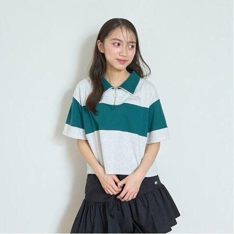 大胆な配色使いがアイキャッチなトップスです、ハーフジップ仕様でトレンド感をプラスしました。