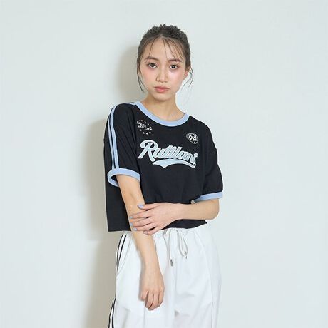ショルダーラインでスポーティムードをアップしたTシャツです。
