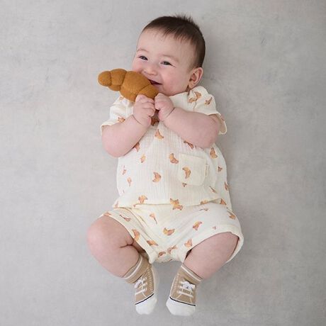 やわらかで肌触りの良いガーゼ仕立てのセットアップです。