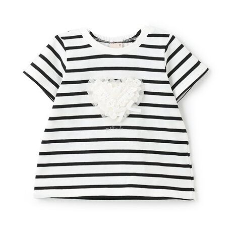 ボーダー柄にハートのモチーフがとても可愛いです。生地感もサラリとしていて良いです。