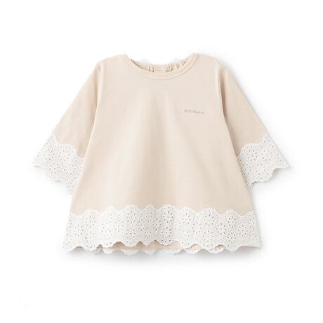 Aラインのシルエットとレース使いで可愛らしく上品な雰囲気に仕上げたTシャツです。