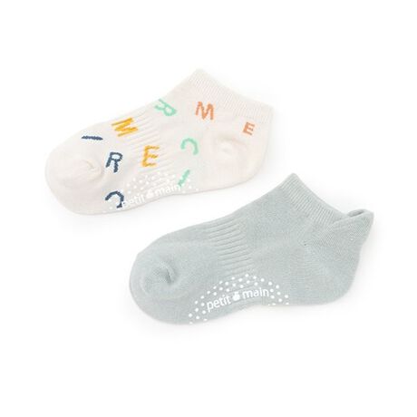 petit mainの定番クマちゃんモチーフや”MERCI”の総柄に加え、サッカーと野球のスポーティデザインがおしゃれなソックスです。