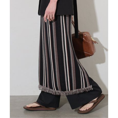 ドライな手触りの素材で程よく肉感があり、透け感は気にせず穿けますが、通気性が良く夏でも涼しく穿いていただけます。フリンジ使いが今年らしく、シンプルなトップスを合わせるだけでスタイリングが決まります。