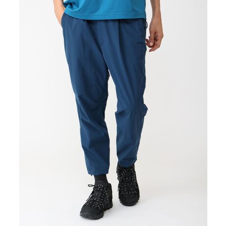 ウエストはナイロンベルトでフィット感の調整も簡単。タックを備えゆとりのある、ウエスト周りのシルエット、ヒップと太ももにかけてゆとりをもたせ、膝は立体裁断を施しており、足上げや屈伸をサポートするなど、十分な動きやすさを確保しました。さらに、裾口にはドローコードを設け、シューズに合わせてシルエットチェンジを楽しむことができます。シンプルながらも、さりげないカラートリムがアクセントとなり、日常にも馴染むデザインに仕上げました。