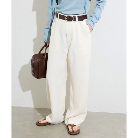 落ち感がありすっきり見えて女性らしく穿きこなせるべイカーパンツ。