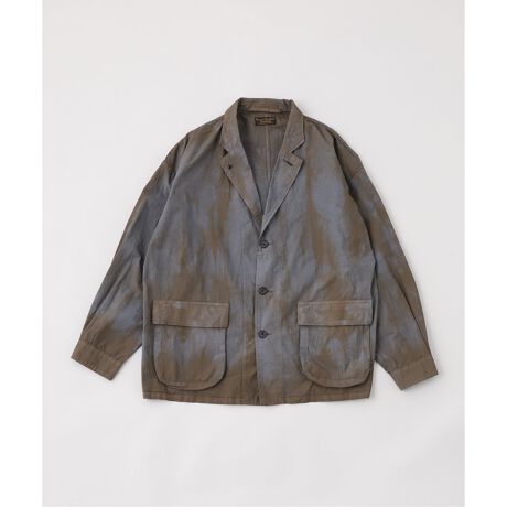 M-47フィールドジャケットのBODYスタイルをベースに衿型をテーラードラペルにしてカジュアルウエアとしています、元ベースがミリタリーなので可動域を十分に考慮したパターンです。そして特別なグラデーションで掛け合わせたタイダイのようなしぼり染めを天日風合いに仕上げています、綿/ナイロンの混率もグラデーションに影響して特別な仕上がりになっています。