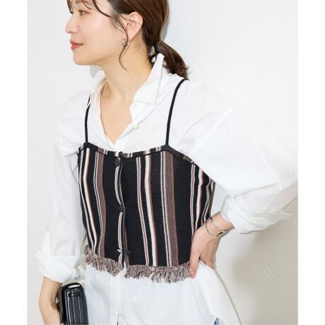 フリンジづかいが今年らしく、着やすいキャミ型になっています。Tシャツなどにプラスワンして着こなしに変化をつけられます。