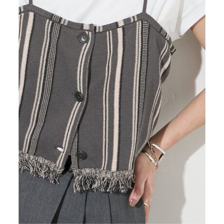 フリンジづかいが今年らしく、着やすいキャミ型になっています。Tシャツなどにプラスワンして着こなしに変化をつけられます。