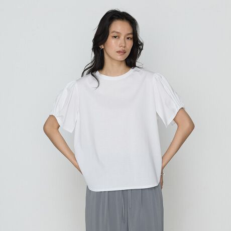 まるでブラウスのように上品なパフスリーブのTシャツです。