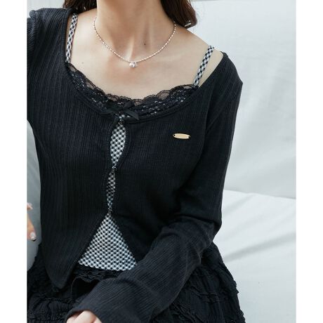 キャミレイヤード風のデザインとコンパクトなサイズ感がトレンドライクなカットトップス。