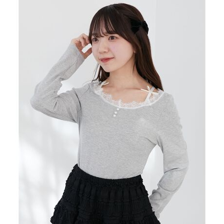 スクエアネックラインにレースが付いた大人っぽいデザインカットトップスが登場。