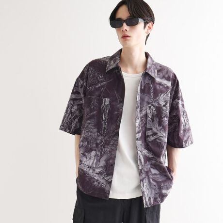 オリジナルのリアルツリーカモフラージュをプリントしたシャツ。