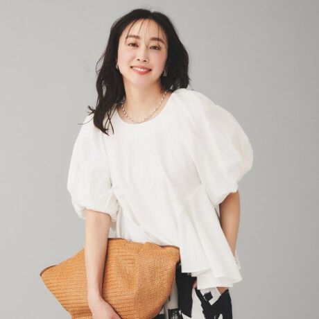 さらりとした着心地の良い風合いと、フェミニンなパフスリーブのデザインが魅力的な1枚。