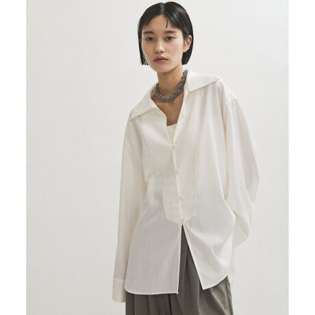 大きめに設定したボザム切り替えがポイントのリラックスシャツ。