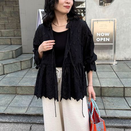 ・立体感のあるお花の刺繍がポイントの前開きブラウスです