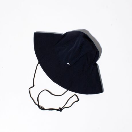 コットンのような滑らかな肌触りが心地良い撥水ナイロンのロングブリムハット。