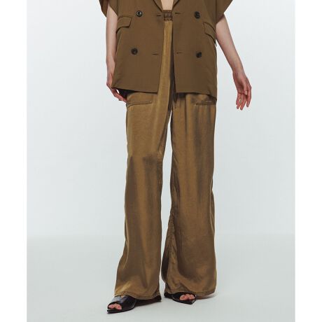 キュプラならではの素材感と製品加工、ゆるっとしたシルエットが絶妙に相まったおすすめのパンツ。