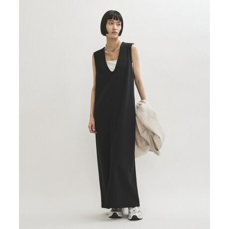 深いUネックとほんのりコクーンなシルエットが特徴。