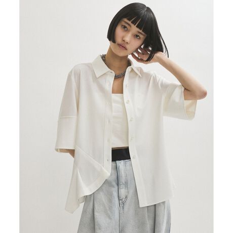ジャージ素材により、ストレスフリーで着用できる半袖シャツ。