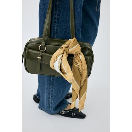 [型番:010HAK56-3371]【CLASSIC CHAIN SCARF】チェーンと唐草をアレンジした柄に、クラッシュ加工を施したレトロな雰囲気のスカーフ。大判なので、頭や肩はもちろん腰に巻いたりと色々なアレンジが楽しめます。
