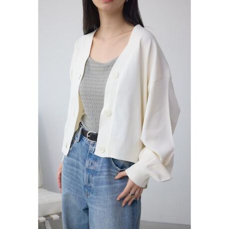 ■コクーンシルエットカーディガン■ポイント丸みのあるコクーンシルエットが特長のニットカーディガン。■ディティールさらりとした肌触りで弾力のあるスポンディッシュニットのカーディガン。S・Mの2サイズ展開で、着丈で差をつけているので、お好きな方を選んでいただけます。寒暖差のときの羽織や夏の冷房対策にも重宝し、どんなコーディネートにも使いやすい1枚です。ゆったりとしたコクーンシルエットでインナーを選ばず、体型カバーも叶います。■スタイリングデニム合わせでカジュアルに、スカート合わせでキレイ目なスタイリングにも対応できます。■生地程よく張りと落ち感のあるポンチ素材です。厚すぎないため、長期で着用していただきやすい生地になっています。透け感:なし裏 地:なし伸縮性:なし光沢感:なし■サイズS・Mサイズは着丈のみが差をつけています。Sサイズはボタンが3つ・Mサイズはボタンが4つになります。[注意事項]※画像の商品はサンプルです。実際の商品と仕様、加工が若干異なる場合があります。※画像の商品は光の照射や角度、お使いのモニター環境により、実物と色味が異なる場合がございます。※着用、お取り扱いの際は、アテンションタグをご確認ください。